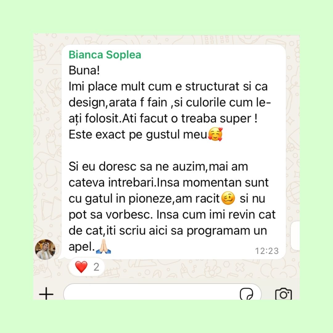 Construim website-uri rapide și moderne pentru business-uri de coaching și educație online, concepute ca un punct clar de orientare pentru clienți, unde mesajul, structura și acțiunile sunt ușor de înțeles și de urmat.