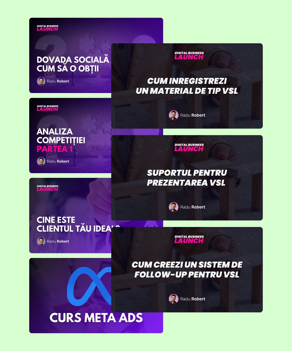Ai acces la o bibliotecă de cursuri care acoperă elementele esențiale ale unui business online funcțional, organizate clar și ușor de aplicat.